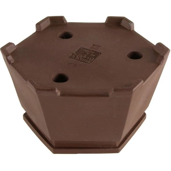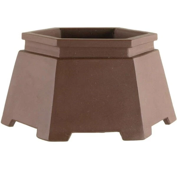 Bonsaischale (Unglasiert, Braun, Sechseckig) in den Abmessungen: 11cm Länge, 11cm Breite, 6.5cm Höhe.