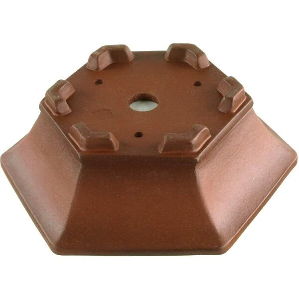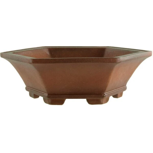 Bonsaischale (Unglasiert, Antik Braun, Sechseckig), Masteredition, in den Abmessungen: 14.5cm Länge, 14.5cm Breite, 4.5cm Höhe.