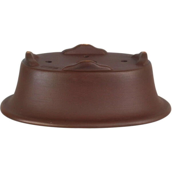 Bonsaischale (unglasiert, dunkelbraun, oval) in den Abmessungen: 16cm Länge, 12cm Breite, 5.5cm Höhe. Sehr gute Qualität aus der berühmten Töpferstadt Yixing.