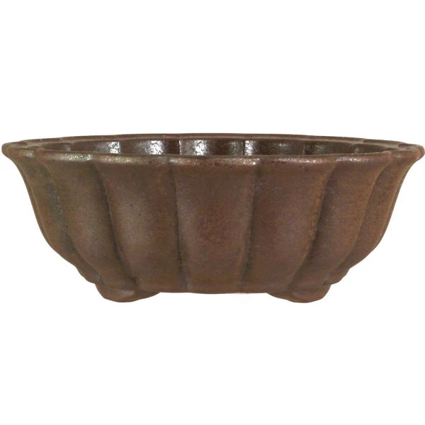 Bonsaischale (unglasiert, dunkelbraun, rund) in den Abmessungen: 18.5cm Länge, 18.5cm Breite, 6.5cm Höhe. Sehr gute Qualität aus der berühmten Töpferstadt Yixing.