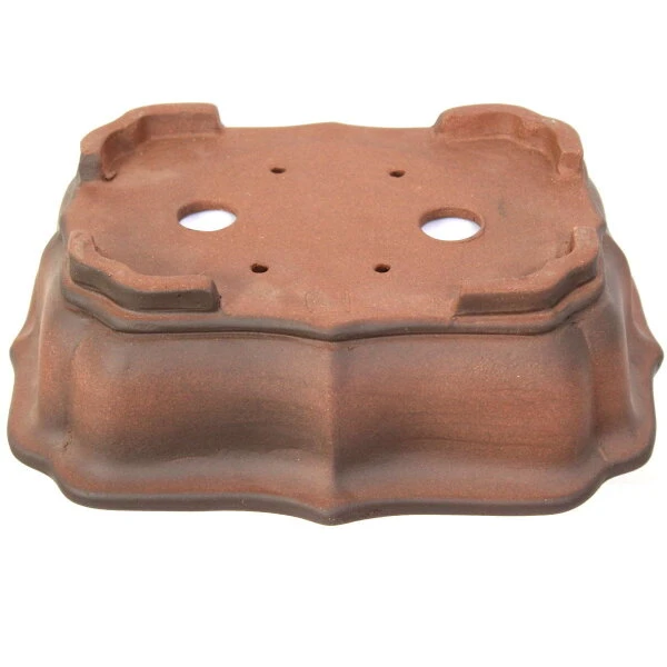 Bonsaischale (Unglasiert, Antik-Braun, Lotusförmig), handgemacht, in den Abmessungen: 25cm Länge, 19cm Breite, 8cm Höhe.