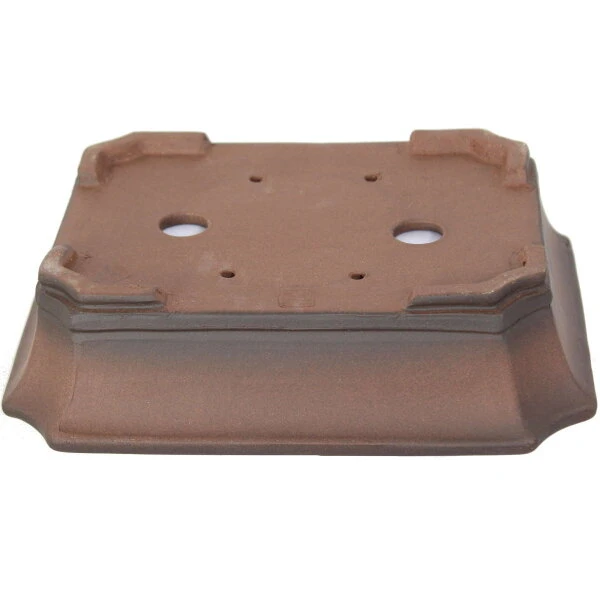 Bonsaischale (Unglasiert, Antik-Braun, Rechteckig), handgemacht, in den Abmessungen: 26cm Länge, 20.5cm Breite, 6.5cm Höhe.
