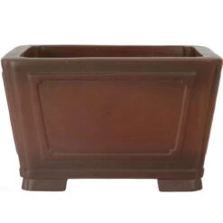 Bonsaischale (unglasiert, antik-braun, quadratisch), handgemacht, in den Abmessungen: 28.5cm Länge, 28.5cm Breite, 17.5cm Höhe.