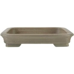 Bonsaischale (unglasiert, antik-grau, rechteckig), handgemacht, in den Abmessungen: 30cm Länge, 25cm Breite, 5.5cm Höhe.