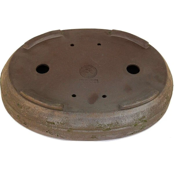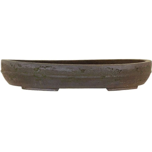 Bonsaischale (Unglasiert, Dunkelbraun, Oval), handgemacht, in den Abmessungen: 32cm Länge, 25cm Breite, 5.5cm Höhe.