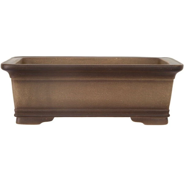 Bonsaischale (unglasiert, antik-grau, rechteckig), handgemacht, in den Abmessungen: 33.5cm Länge, 23.5cm Breite, 11.5cm Höhe.