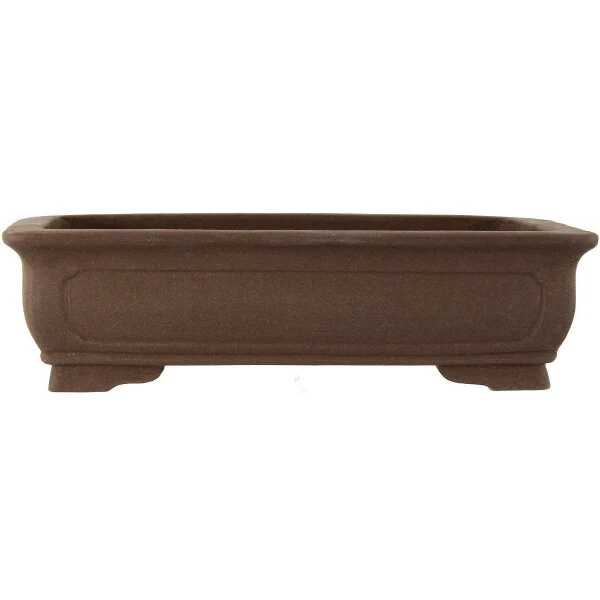 Bonsaischale (Unglasiert, Dunkelbraun, Rechteckig), handgemacht, in den Abmessungen: 34.5cm Länge, 26cm Breite, 9cm Höhe.