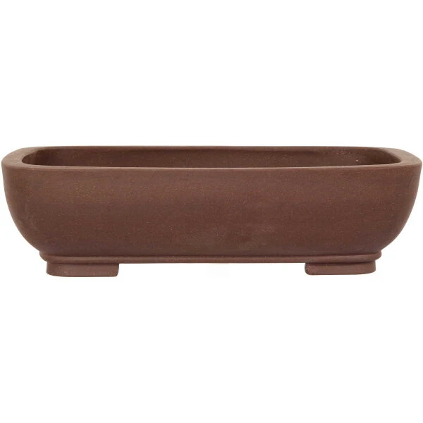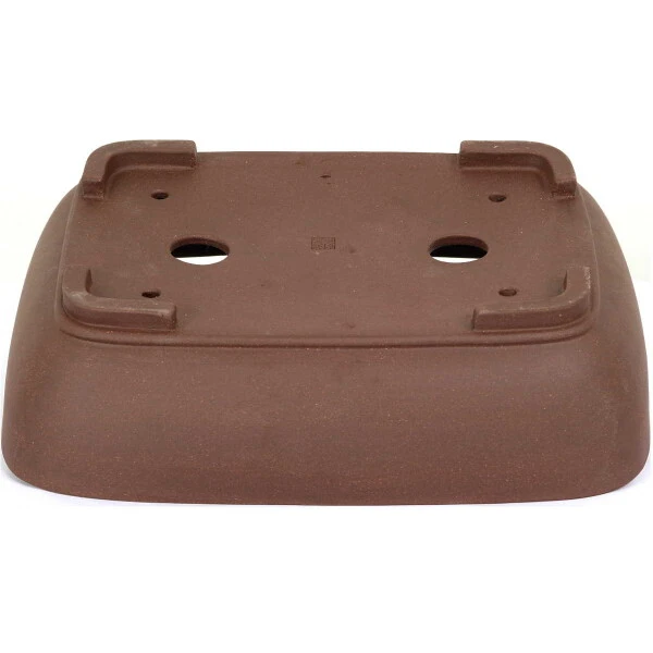 Bonsaischale (unglasiert, braun, rechteckig), handgemacht, in den Abmessungen: 36.5cm Länge, 28.5cm Breite, 10cm Höhe.