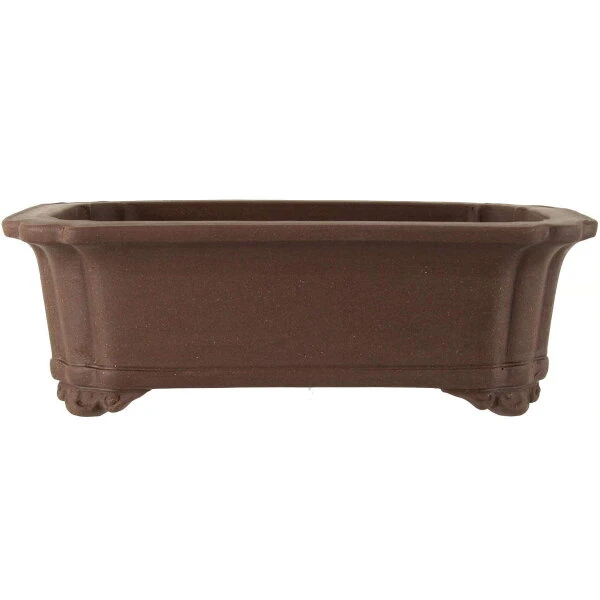 Bonsaischale (Unglasiert, Dunkelbraun, Rechteckig), handgemacht, in den Abmessungen: 36cm Länge, 27.5cm Breite, 12cm Höhe.