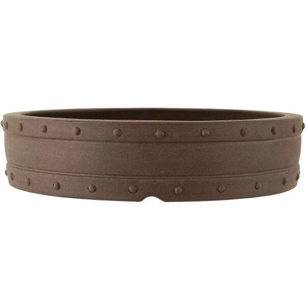 Bonsaischale (Unglasiert, Dunkelbraun, Rund), handgemacht, in den Abmessungen: 37cm Länge, 37cm Breite, 9cm Höhe.
