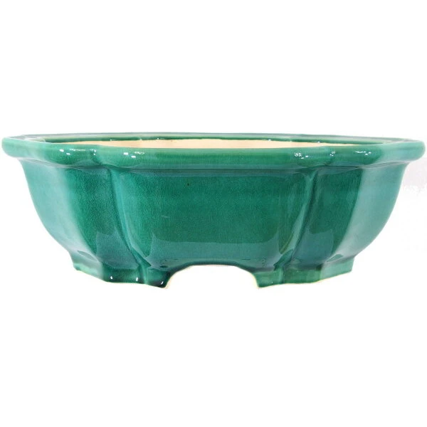 Bonsaischale (Glasiert, Blaugrün, Sechseckig), handgemacht, in den Abmessungen: 39cm Länge, 39cm Breite, 12.5cm Höhe.