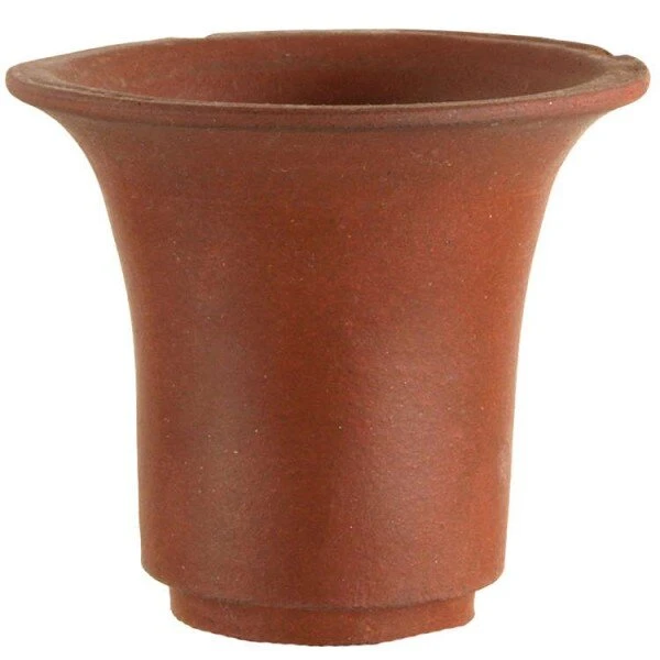 Bonsaischale (Unglasiert, Braun, Rund) in den Abmessungen: 4.9cm Länge, 4.9cm Breite, 4.2cm Höhe.