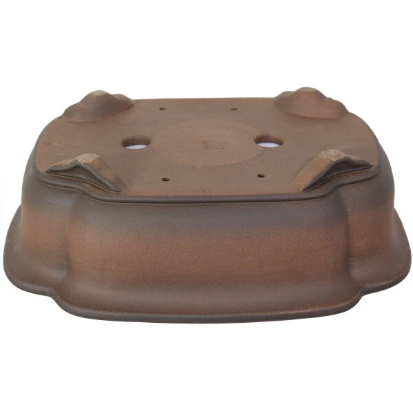 Bonsaischale (Unglasiert, Antik-Braun, Lotusförmig), handgemacht, in den Abmessungen: 40cm Länge, 30.5cm Breite, 12.5cm Höhe.