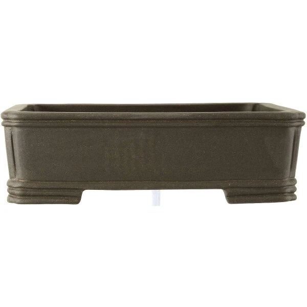 Bonsaischale (Unglasiert, Grau, Rechteckig), handgemacht, in den Abmessungen: 40cm Länge, 30.5cm Breite, 12cm Höhe.