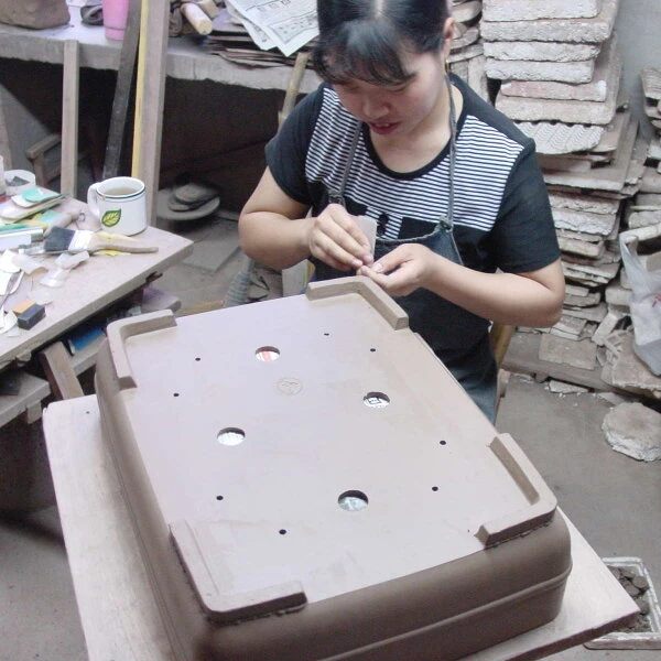 Drahtlöcher: Vorhanden. Ermöglichen eine gute Fixierung des Wurzelballens beim Umtopfen. Dadurch wächst der Bonsai besser an.