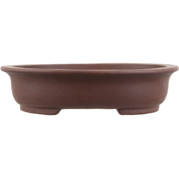 Bonsaischale (unglasiert, braun, oval), handgemacht, in den Abmessungen: 42cm Länge, 33.5cm Breite, 10cm Höhe.