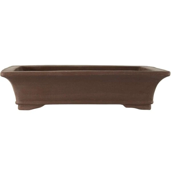 Bonsaischale (Unglasiert, Dunkelbraun, Rechteckig), handgemacht, in den Abmessungen: 43cm Länge, 32cm Breite, 10.5cm Höhe.