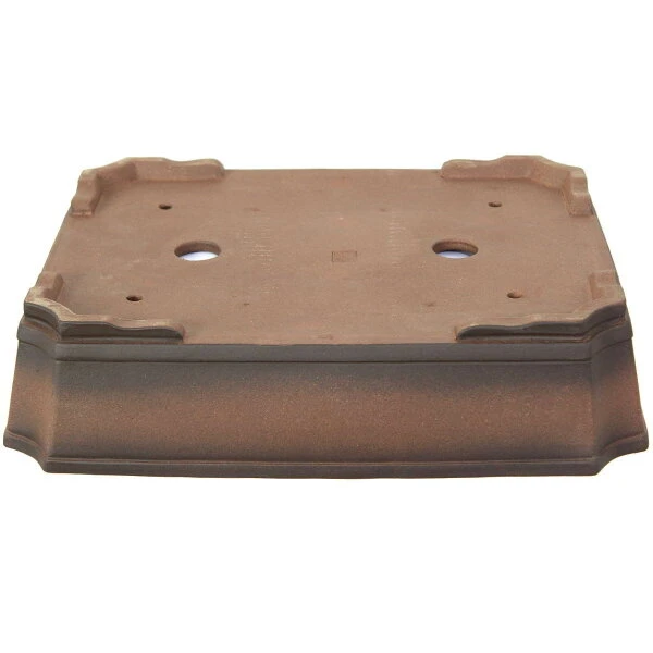 Bonsaischale (Unglasiert, Antik-Braun, Rechteckig), handgemacht, in den Abmessungen: 44.5cm Länge, 35.5cm Breite, 10.5cm Höhe.