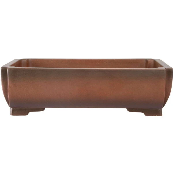 Bonsaischale (unglasiert, antik-braun, rechteckig), handgemacht, in den Abmessungen: 46cm Länge, 32.5cm Breite, 13cm Höhe.