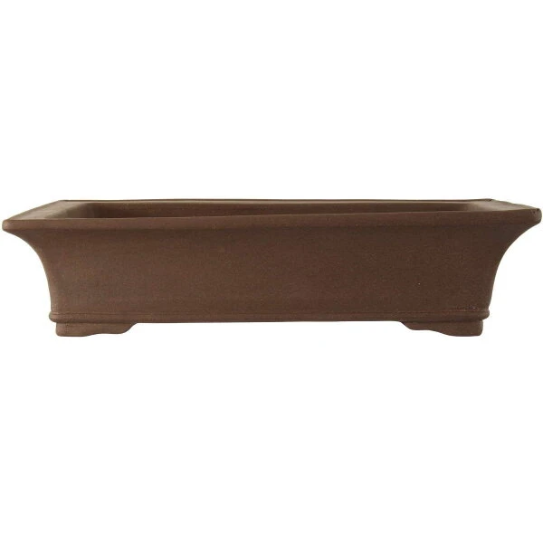 Bonsaischale (Unglasiert, Dunkelbraun, Rechteckig), handgemacht, in den Abmessungen: 48cm Länge, 36cm Breite, 11.5cm Höhe.