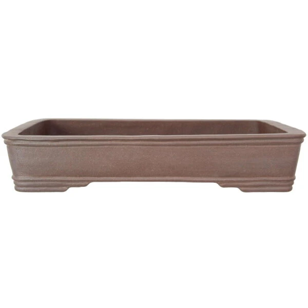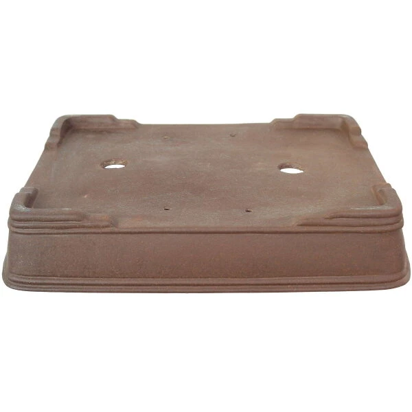 Bonsaischale (Unglasiert, Antik-Braun, Rechteckig), handgemacht, in den Abmessungen: 50cm Länge, 39.5cm Breite, 9cm Höhe.