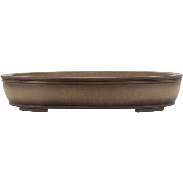 Bonsaischale (unglasiert, antik-grau, oval), handgemacht, in den Abmessungen: 52.5cm Länge, 41.5cm Breite, 9.5cm Höhe.