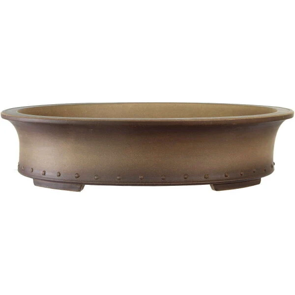 Bonsaischale (unglasiert, antik-grau, oval), handgemacht, in den Abmessungen: 56cm Länge, 45.5cm Breite, 13cm Höhe.