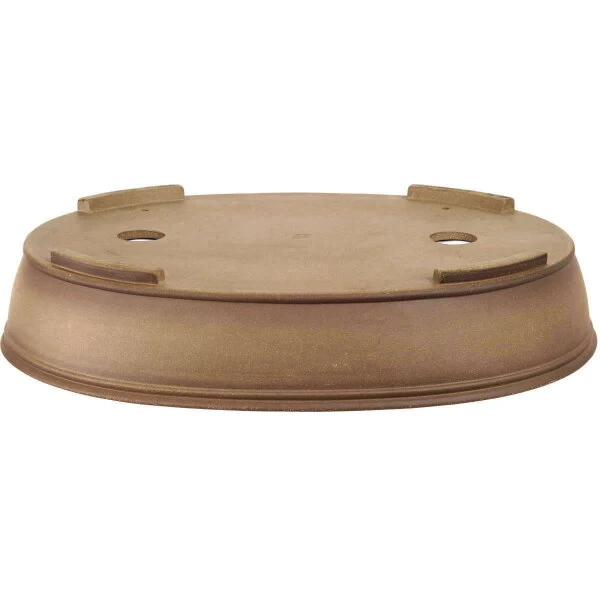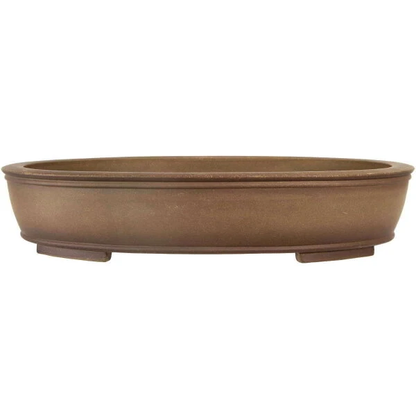 Bonsaischale (unglasiert, antik-grau, oval), handgemacht, in den Abmessungen: 62cm Länge, 47.5cm Breite, 12cm Höhe.