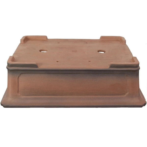 Bonsaischale (Unglasiert, Antik-Hellbraun, Rechteckig), handgemacht, in den Abmessungen: 77cm Länge, 59cm Breite, 23cm Höhe.