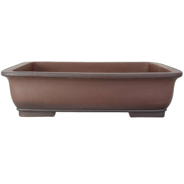 Bonsaischale (Unglasiert, Antik-Braun, Rechteckig), handgemacht, in den Abmessungen: 81cm Länge, 61.5cm Breite, 22.5cm Höhe.