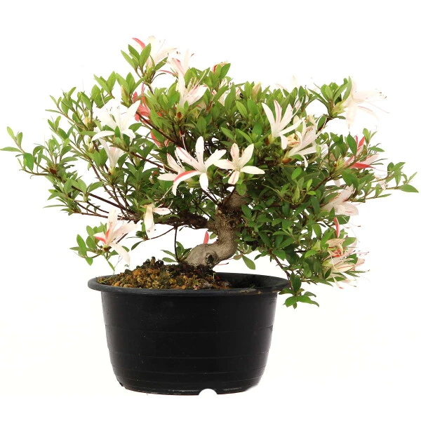 Besonders auffällig ist im April-Juni die üppige Blüte mit leuchtend Einzelblüten. Die Satsuki Azalee ist gut für die Gestaltung eines dekorativen Blütenbonsai geeignet. Oft haben Azaleen Bonsai kräftige Stämme.